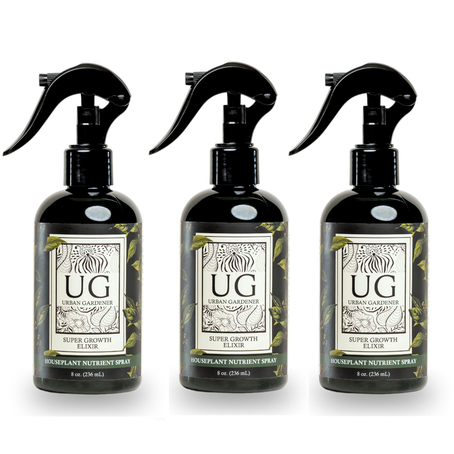 Super Growth Elixir (SGE-1) is an all-natural houseplant foliar spray that keeps leaves healthy, promotes growth, and protects against disease.